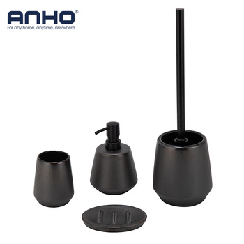 4pcs Black Ceramic Bathroom Accessory Set Including Soap Dispenser Tumbler Soap Dish & Toiletbrush Holder for Hotels