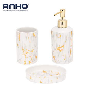 Sustainable Ceramic Bathroom Accessory Set-Golden Vein Collection White Bath Decor; Soap Dishes Towel Bar Toilet Paper Hotels